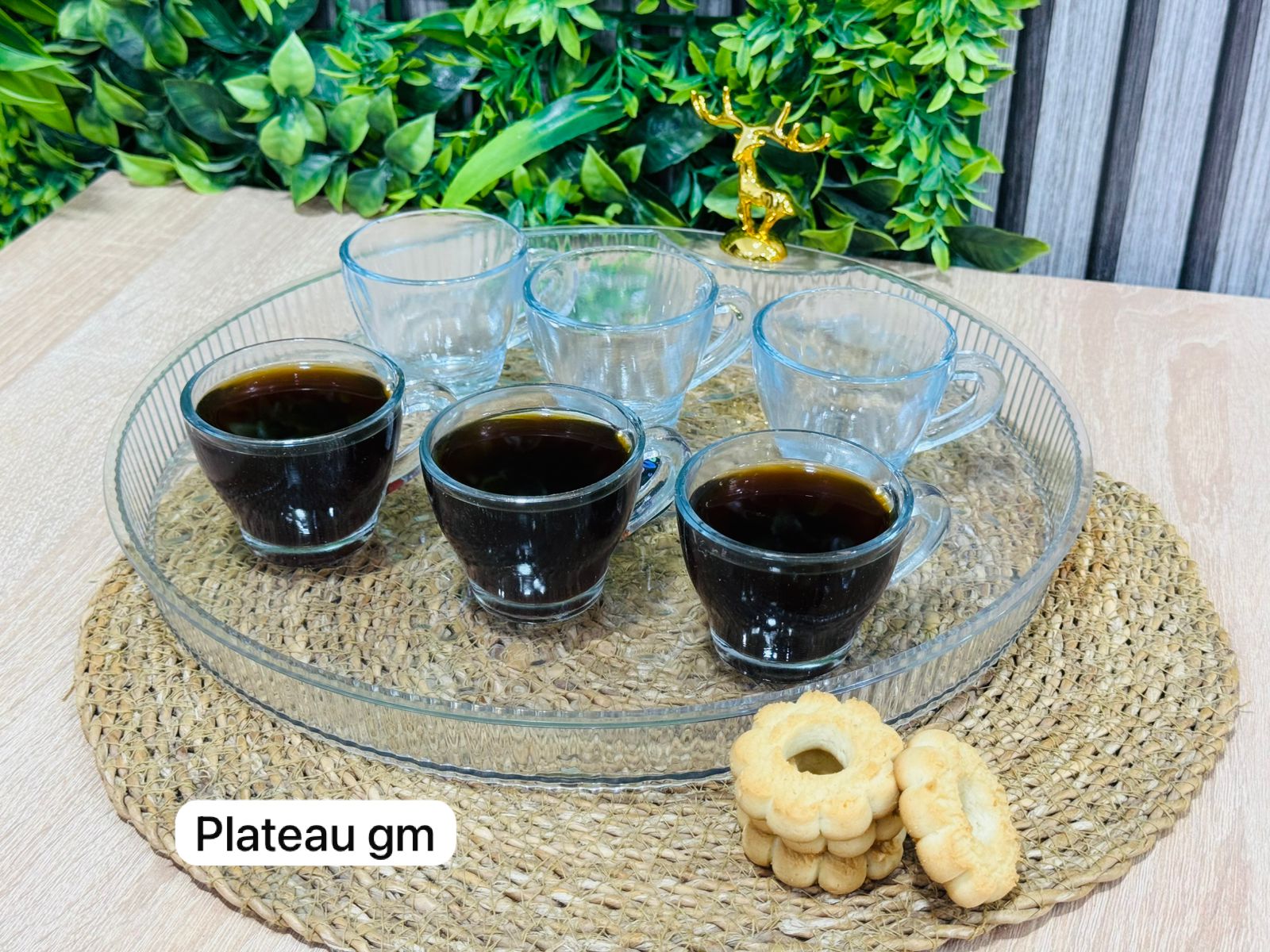 PACK plateau GM en blanc rond+ 6 tasse en verre طبق و كيسان